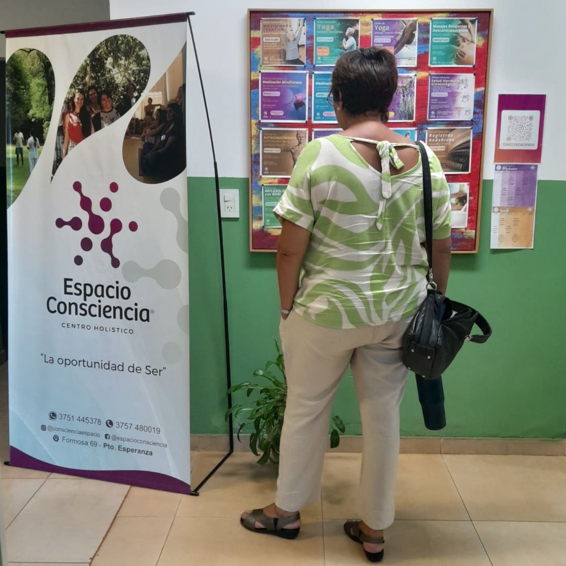 "Me enamoré del lugar. No pude creer “la suerte” de tener en nuestra pequeña ciudad, un espacio tan completo y tan mágico. Supe que aprendería mucho entre esas paredes. Como el hacer Yoga con Paulina, eso me empezó a cambiar la vida de a poquito. Me acerqué buscando algunas respuestas. Había para mí mucho más que eso. Encontré a Diego y a Maga que escuchan sin juzgar, que entienden, guían y contienen. Y empecé con ellos un recorrido hermoso por un montón de herramientas de autoconocimiento, como diseño humano, constelaciones, terapia con flores, astrología. No solo me enseñaron a encontrar las respuestas más trascendentales dentro mío, sino que llegaron a mí conceptos que, sin miedo a equivocarme, son de los más importantes que podemos incorporar en esta vida. Esos que te cambian la forma de verla y de vivirla. De verte y de relacionarte con el resto. Y aunque siempre fui una persona que disfruta de vivir, hoy me siento en un lugar mucho mejor. Hoy puedo ver y sentir la magia de la vida. Y eso, lo encontré en el Espacio Consciencia. Mi gratitud con ustedes es eterna."
